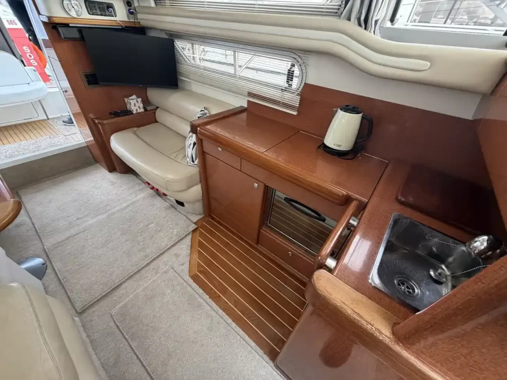 - Ample Sleeping Accommodations: The Sealine F33 comfortably sleeps six people across two cabins and the saloon, making it perfect for overnight stays or extended trips on the water.
