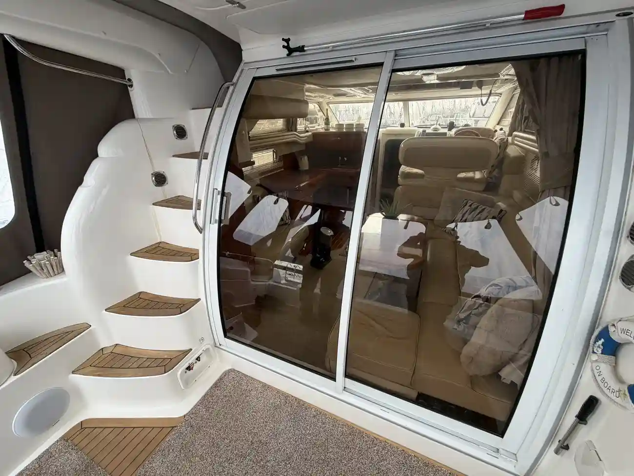 - Safe Access: Moulded stairs offer safe and easy access from the cockpit to the flybridge, ensuring seamless movement between levels.